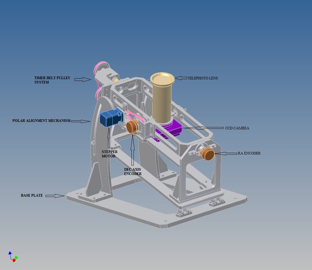 - Design and development of control electronics for the instrument. Electronic boards like Encoder Interface boards, Stepper Motor Driver Boards, limit switch interface, and Telescope controller boards were developed.