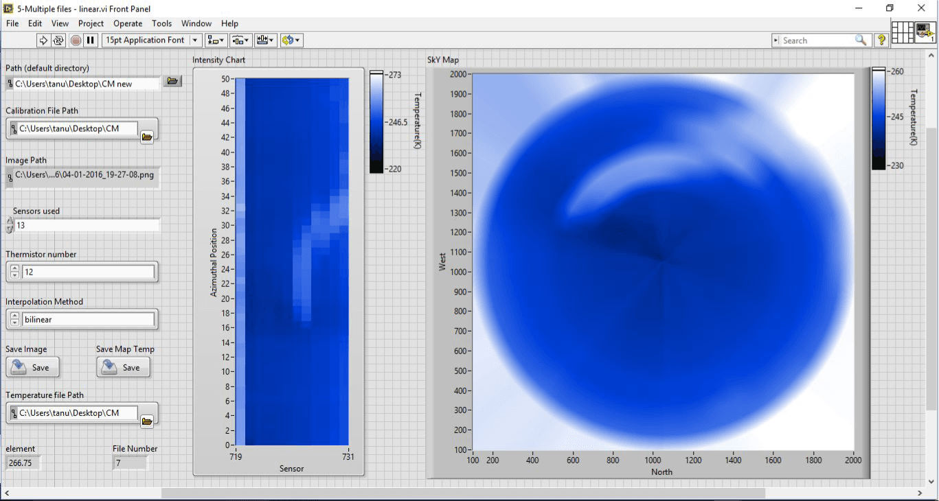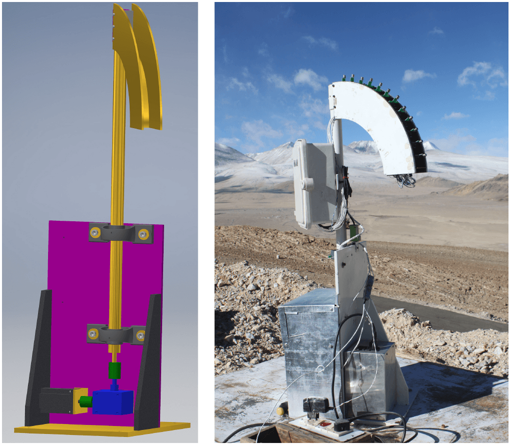 All Sky Scanning Cloud Monitor is one of the instrument I developed as part of my Ph.D. The instrument works on the principle of measurement of sky temperature for differentiating between the clear and cloudy sky. A thermopile sensor is used to measure the sky temperature. Multiple sensors are arraned in the form of an arc, whcih then rotates around zenith to cover the whole sky. Below are the tasks performed by me:-